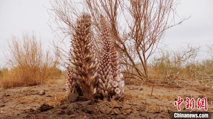 圖為梭梭林下種植的肉蓯蓉開花。敖琪 攝