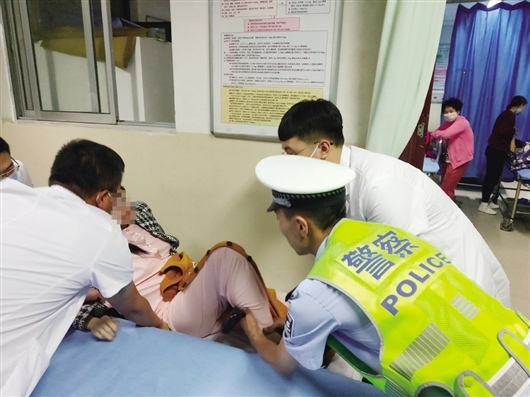接警后,王堒與同事平旭迅速趕往建設(shè)路與經(jīng)一路路口,20時39分,兩人從青山區(qū)交管大隊民警手中接上病人,隨后拉響警笛,由警車開道向醫(yī)院疾馳。