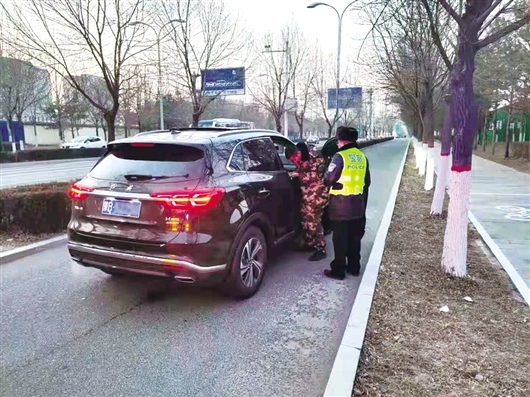 12月20日17時15分,九原區(qū)交管大隊第三警務區(qū)執(zhí)勤民警正駕駛警車在轄區(qū)巡邏清理違停車輛,當巡邏至緯四路與經二路交叉口時,他們發(fā)現一輛黑色越野車停在緯四路非機動車道內且打著雙閃?!翱吹杰嚧蛑p閃燈,想著可能是車上的人有啥困難,我們就把警車開到附近,看到一名年輕男子正在車周圍焦急地來回徘徊,神情特別緊張?!眻?zhí)勤民警說。