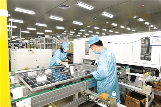 雙良新能科技(包頭)有限公司生產(chǎn)光伏組件。吳杰 攝