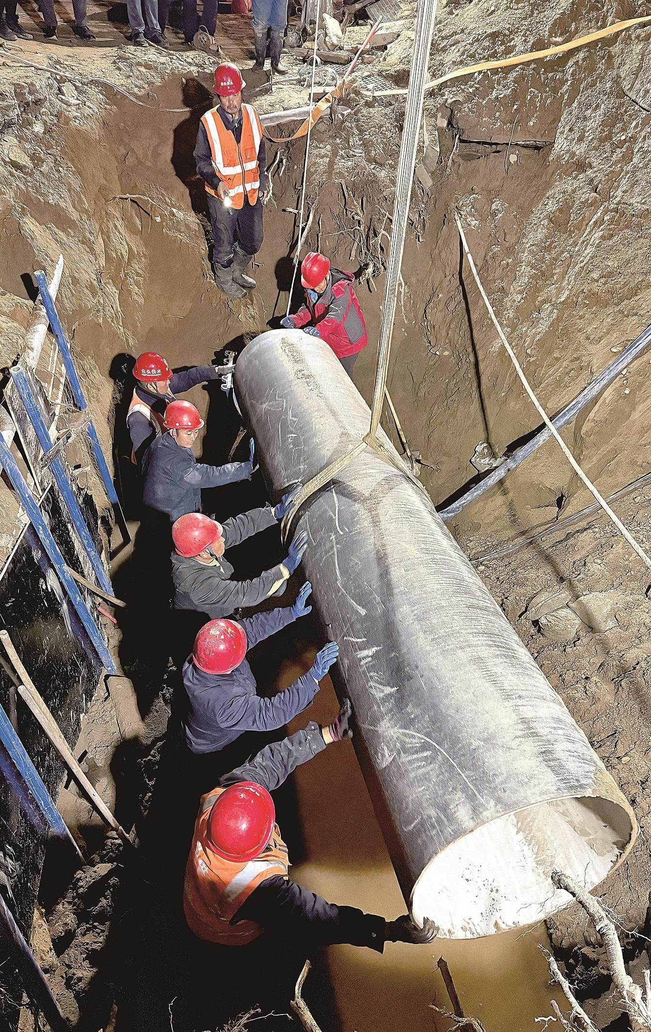 夜色漸深,氣溫持續(xù)下降,搶修現(xiàn)場(chǎng)卻燈火通明、熱火朝天。挖掘、排水、清理、焊接……每一個(gè)環(huán)節(jié)都爭(zhēng)分奪秒,井然有序。黨員干部沖鋒在前,帶頭跳入泥水中作業(yè);其他維修人員輪番上陣,困了就在工程車?yán)锊[一會(huì)兒,餓了就蹲在路邊匆匆扒幾口盒飯。頂風(fēng)冒雨的兩個(gè)日夜,他們心中只有一個(gè)信念:早一分鐘修復(fù),市民就早一分鐘恢復(fù)正常用水,城市秩序就早一分鐘恢復(fù)。