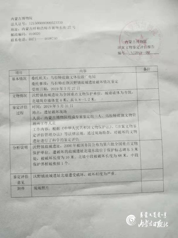 內蒙古博物院出具的《涉案文物鑒定評估報告》