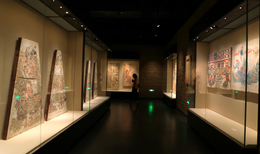 游人在館內(nèi)參觀契丹墓葬壁畫
