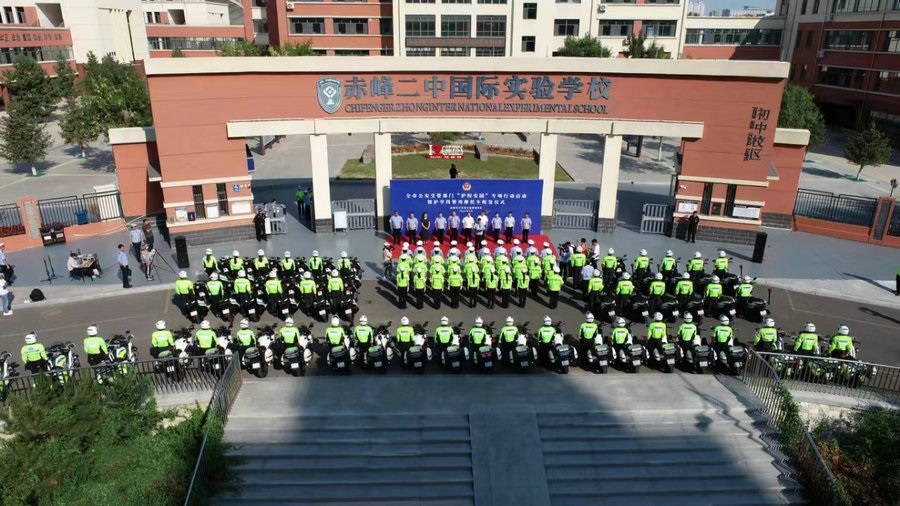 北疆新聞呼和浩特9約3日電(記者 楊凈毓)8月30日,赤峰市公安局交管支隊在赤峰二中國際實驗學校門前,舉行全市公安交管部門“護校安園”專項行動啟動暨護學崗警用摩托車配發(fā)儀式。