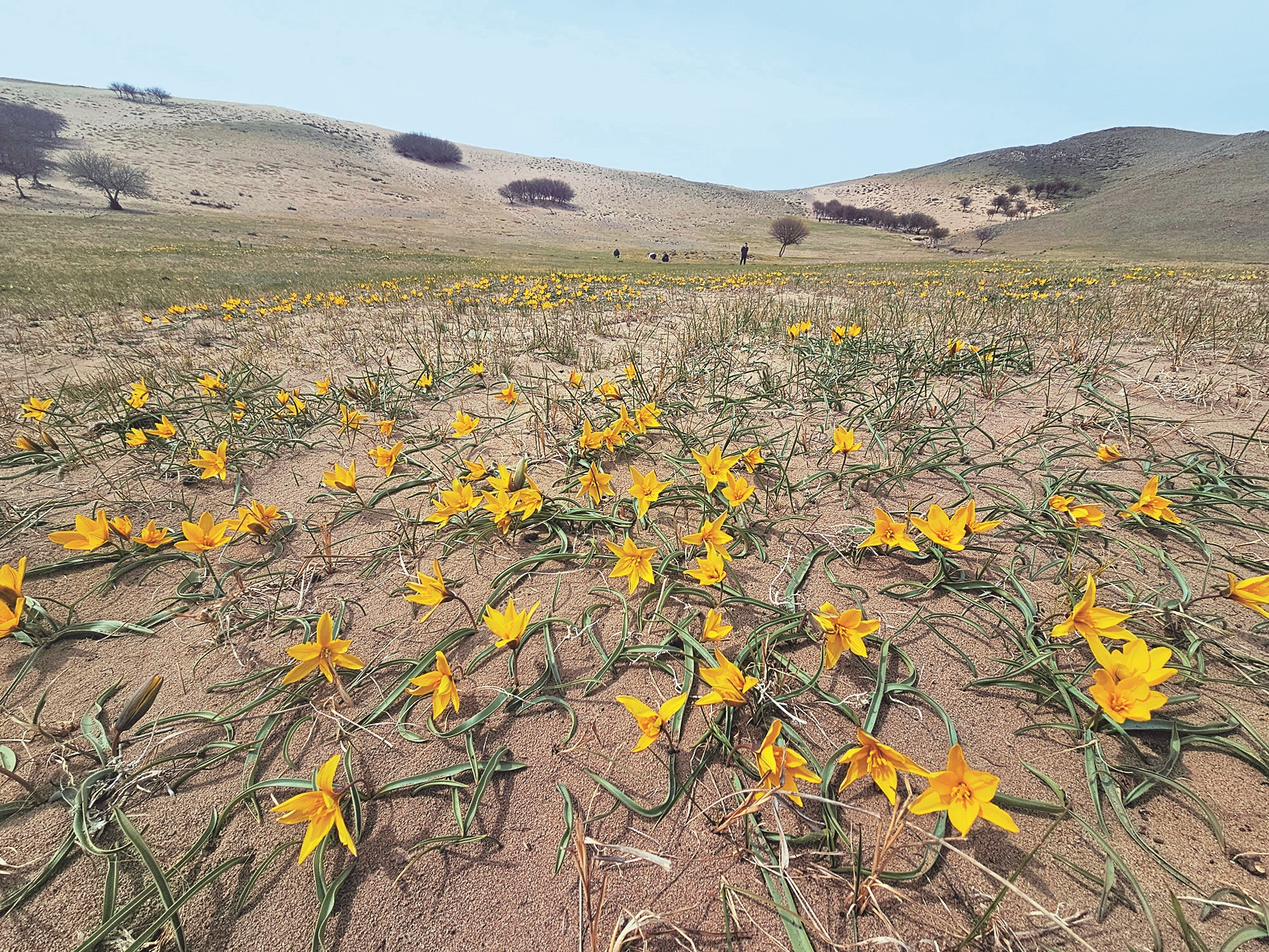 蒙古郁金香是多年生草本植物,僅分布于我國內(nèi)蒙古,由于數(shù)量稀少,被列為國家二級保護(hù)植物。自2023年5月重新發(fā)現(xiàn)郁金香后,保護(hù)區(qū)采取了嚴(yán)格的保護(hù)措施,今年蒙古郁金香分布面積已從最初50畝擴展到約100畝,呈現(xiàn)出良好的恢復(fù)態(tài)勢。 (史子龍)