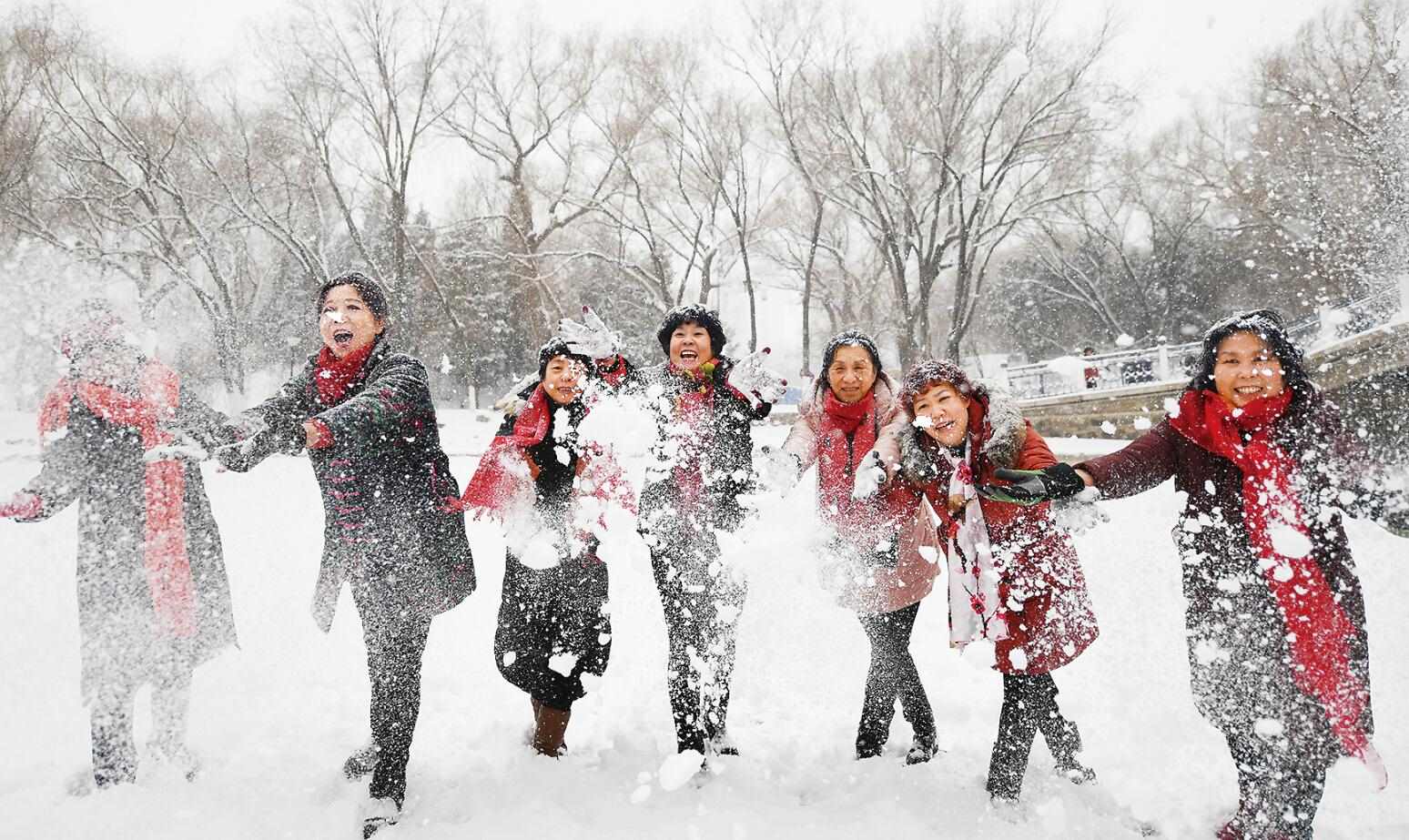 2月14日,呼和浩特市迎來降雪天氣,首府銀裝素裹,人們走到公園、廣場欣賞雪景。