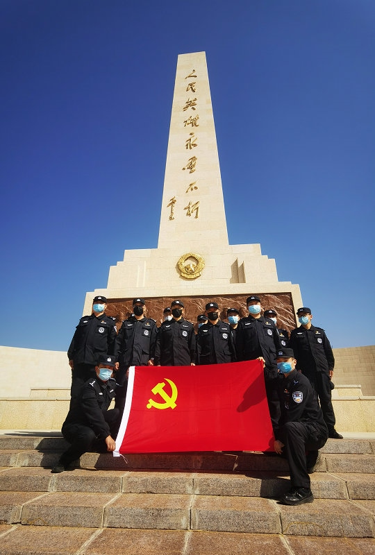 在紀(jì)念碑前,隊(duì)員們面對(duì)鮮紅的黨旗,高舉右手莊嚴(yán)宣誓。通過重溫入黨誓詞,進(jìn)一步增強(qiáng)了黨員民警輔警的使命感、責(zé)任感和榮譽(yù)感,表達(dá)了對(duì)黨、對(duì)人民的無限忠誠和堅(jiān)定信念。