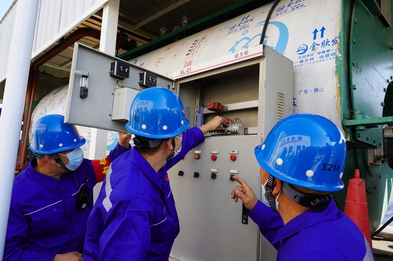 演練伊始,參加演習(xí)的運(yùn)營所、司爐車間、檢修車間、電氣車間、儀表車間、設(shè)備處、安保處等人員按照預(yù)設(shè)的情境,各司其職,開始了管路連接、電源接入、鍋爐調(diào)試,再進(jìn)行循環(huán)泵、補(bǔ)水泵盤車的調(diào)試,以及補(bǔ)水、循環(huán)泵啟動(dòng)、鍋爐點(diǎn)火等等一系列有條不紊的實(shí)戰(zhàn)操作。