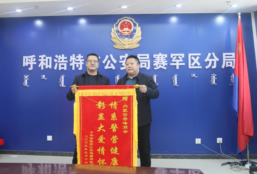 賽罕區(qū)副區(qū)長、公安分局局長趙新龍,政委郭震乾等領(lǐng)導(dǎo)熱情接待了商會和愛心企業(yè)負(fù)責(zé)人,并向商會及愛心企業(yè)贈送錦旗以示感謝。
