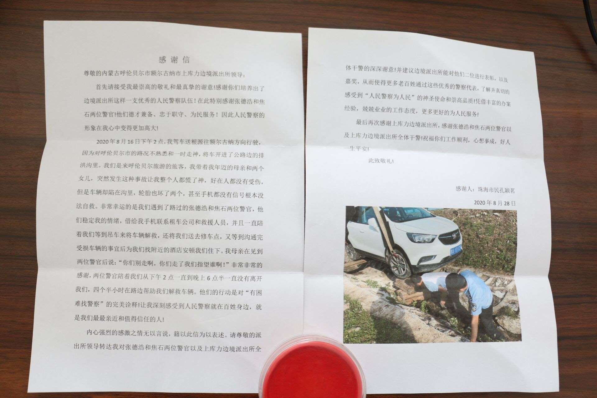 9月2日,印有“盡職盡責(zé)熱心為民,失而復(fù)得溫暖人心”的錦旗從北京郵寄到室韋邊境派出所;9月2日,一面印有“情系百姓,為民解憂”的錦旗被群眾送到恩和邊境派出所民警手中;9月3日,印有“人民衛(wèi)士,一心為民”的錦旗送到莫爾道嘎邊境派出所民警手中;9月4日,上庫(kù)力邊境派出所收到了從廣東珠江郵來(lái)了印有“人民警察為人民,服務(wù)群眾解民憂”的錦旗和一封感謝信...