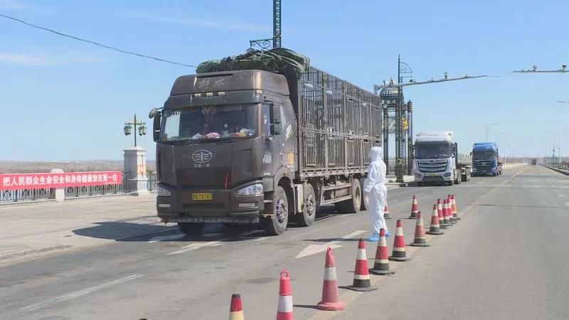 莫旗地處內(nèi)蒙古自治區(qū)呼倫貝爾市東部,與黑龍江省訥河市只有一江之隔,莫旗江橋卡口日常工作量大,在這里記者看到疫情防控檢查站現(xiàn)場(chǎng)指揮員袁軍和工作人員們正在對(duì)每一輛過(guò)往車輛進(jìn)行例行查驗(yàn),要求每一輛車駕駛員出示健康碼、行程碼,核酸檢測(cè)陰性證明,做到逢車必查,逢人必驗(yàn),不漏一車,不落一人。