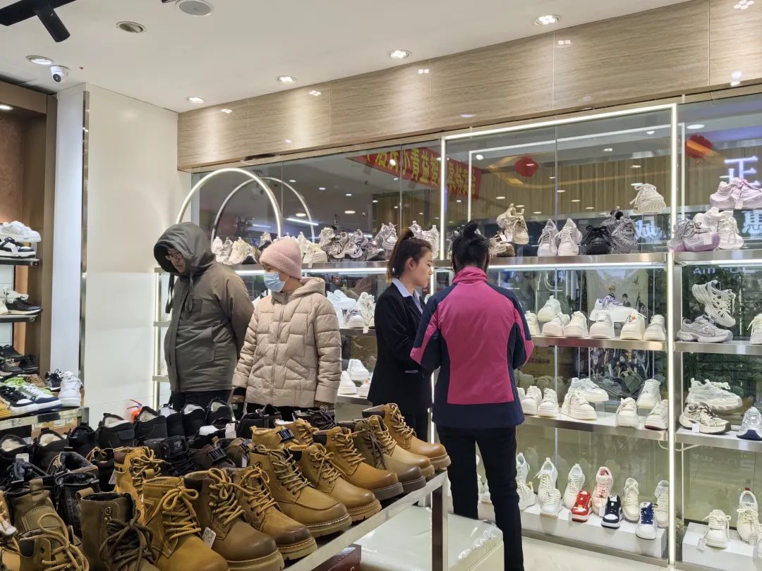 在地下商業(yè)街,多家服飾品店內(nèi)掛滿色彩鮮艷的春季新品,輕盈的薄款外套、舒適的休閑褲、時(shí)尚的運(yùn)動(dòng)鞋,各種款式應(yīng)有盡有,新品擺放得井井有條,整潔美觀的店鋪吸引來絡(luò)繹不絕的消費(fèi)者前來挑選春裝,店員熱情周到地提供咨詢和選購(gòu)建議,給顧客帶來舒適的購(gòu)物體驗(yàn),帶著心儀的春裝滿意而歸。