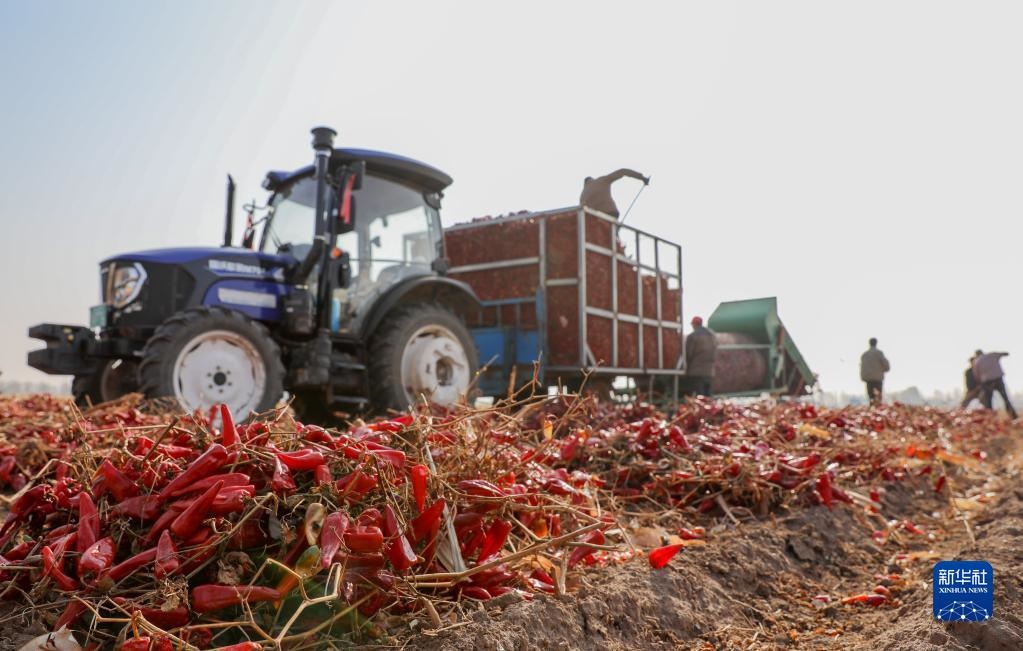 近日,內(nèi)蒙古通遼市開魯縣迎來紅干椒收獲銷售旺季。開魯縣紅干椒皮紅肉厚、品質(zhì)優(yōu)良,產(chǎn)品暢銷國內(nèi)外市場(chǎng)。近年來,開魯縣紅干椒種植面積穩(wěn)定在60萬畝。新華社記者 連振 攝