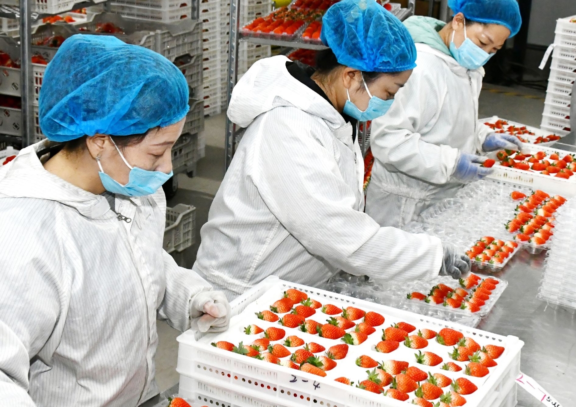 在包裝車間,只見工作人員正手法嫻熟地包裝著草莓,一顆顆新鮮草莓經(jīng)過分揀、打包,將通過冷鏈運(yùn)輸,跨越山海,奔赴全球各地,與世界共享來自烏蘭察布的“莓”好與甜蜜。