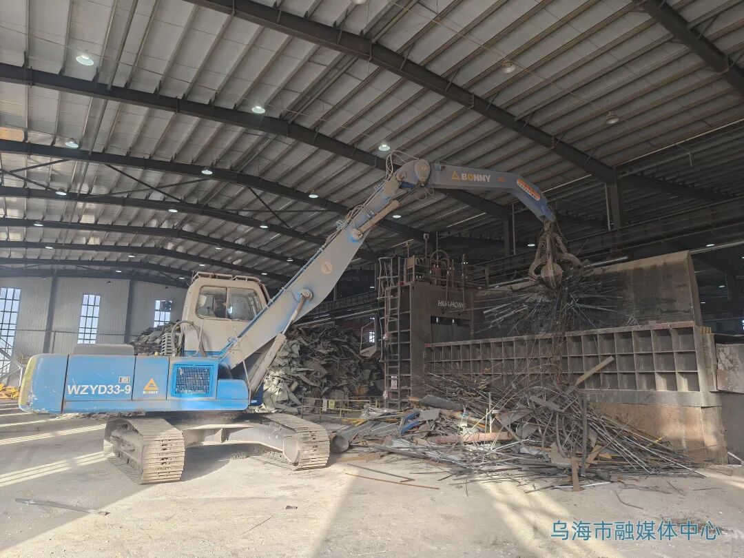 近日,記者來(lái)到位于烏海海勃灣高新技術(shù)產(chǎn)業(yè)開(kāi)發(fā)區(qū)的內(nèi)蒙古萬(wàn)斯通環(huán)保再生資源回收有限公司,走進(jìn)廢鋼車(chē)間,龍門(mén)剪、抓鋼機(jī)、電磁起重機(jī)等交叉作業(yè),機(jī)械轟鳴聲與金屬撞擊聲、破碎聲不絕于耳。