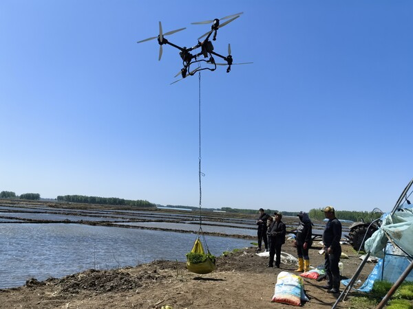 好力保鎮(zhèn)是興安盟大米的核心產(chǎn)區(qū),今年水稻種植面積達12.7萬畝,插秧任務(wù)重。為提高春耕效率、降低勞動強度,當?shù)卣e極引導(dǎo)農(nóng)戶引入無人機運苗技術(shù)。這些經(jīng)過專門改裝的無人機,配備了先進的定位系統(tǒng)和載重設(shè)備,一次能吊運10至12盤秧苗,每天可完成近100畝地的插秧運苗任務(wù)。而且,它們能夠突破田埂、溝渠的限制,在復(fù)雜地形的稻田里自由作業(yè)。
