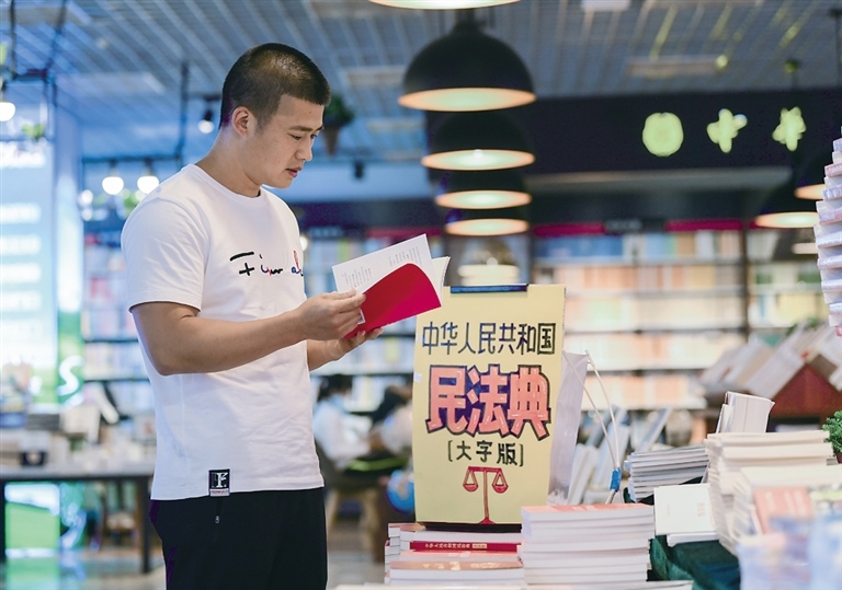 6月10日,呼和浩特市民在內(nèi)蒙古新華書店購買《中華人民共和國民法典》。據(jù)工作人員介紹,《中華人民共和國民法典》自6月2日擺上貨架就十分吸引讀者目光,成為熱銷圖書,截至目前該書店訂購量已逾2000冊。攝影/北方新報(bào)正北方網(wǎng)記者 牛天甲