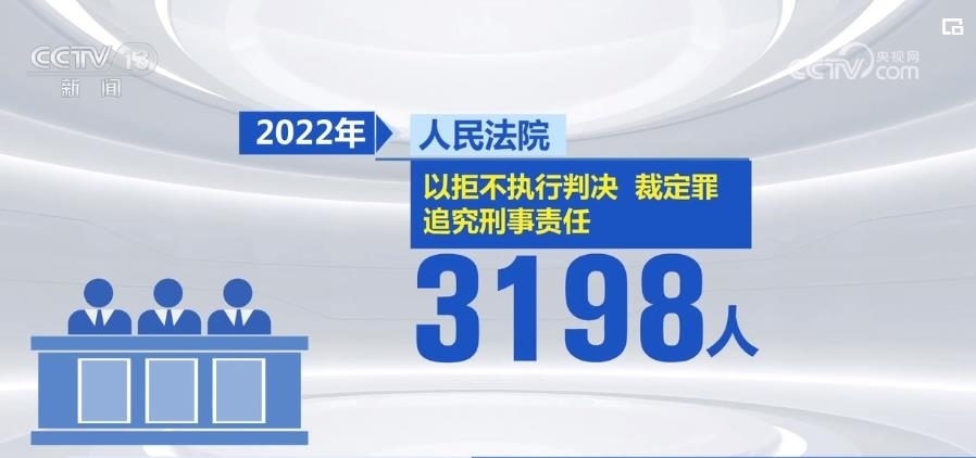 2022年,人民法院以拒不執(zhí)行判決、裁定罪追究刑事責任3198人。下一步,最高人民法院將聯(lián)合公安機關(guān)、檢察機關(guān)開展集中打擊拒不執(zhí)行判決、裁定犯罪專項行動,建立健全公檢法機關(guān)依法懲治拒不執(zhí)行判決、裁定犯罪的常態(tài)化工作機制。