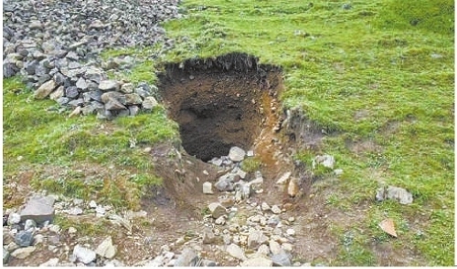 因這些盜采者并不清楚挖水晶石的技巧和方法,遇到石頭就鑿開(kāi)打碎看一看,鑿不開(kāi)的就用炸藥炸開(kāi),炸開(kāi)的碎渣都堆在洞口,碎渣長(zhǎng)期覆蓋在泥土上,導(dǎo)致周?chē)闹参餆o(wú)法正常生長(zhǎng)。在爆破過(guò)程中,碎渣受到震動(dòng)順坡滾動(dòng)而下,一定程度上又破壞了坡底的生態(tài)植被。