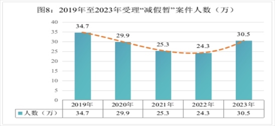 最高檢積極推動(dòng)《關(guān)于依法推進(jìn)假釋制度適用的指導(dǎo)意見》《關(guān)于進(jìn)一步規(guī)范暫予監(jiān)外執(zhí)行工作的意見》落地落實(shí),全國(guó)檢察機(jī)關(guān)共受理審查“減假暫”案件304522人,同比上升25.2%。