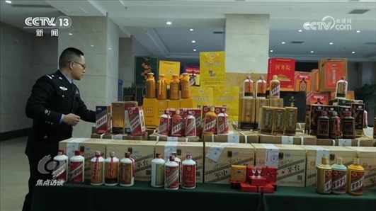 曾光:“我們在全國五個省市開展了相關(guān)全面收網(wǎng)工作,一共抓獲犯罪嫌疑人54名,搗毀生產(chǎn)灌裝窩點三個、銷售經(jīng)營場所三個、倉儲倉庫三個,現(xiàn)場查扣成品的知名假酒一共接近11600瓶。”