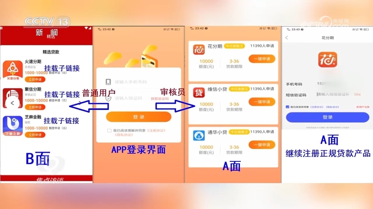 安徽省蕪湖市公安局經(jīng)開區(qū)分局偵查打擊部警務(wù)技術(shù)二級主管高陽:“提供審核的都是正規(guī)的貸款產(chǎn)品,點擊以后一步一步看起來都很正規(guī),這樣審核員就會通過,覺得這個APP是正常的,可以在官方應(yīng)用商城上架。但是普通用戶登錄以后,就會下載新的APP,新的APP都是詐騙APP?!?/p>