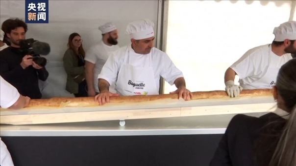 ·140.53米!法國(guó)面包師烤出最長(zhǎng)法棍打破紀(jì)錄。