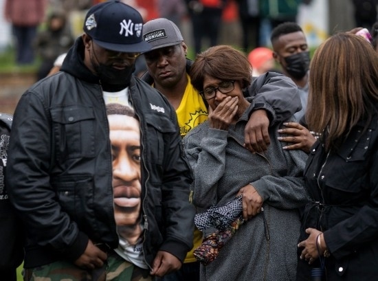 2022年5月25日,在美國明尼蘇達(dá)州明尼阿波利斯市,弗洛伊德的家人參加哀悼活動(dòng),紀(jì)念弗洛伊德遇害兩周年。新華社發(fā)(本·布魯爾攝)