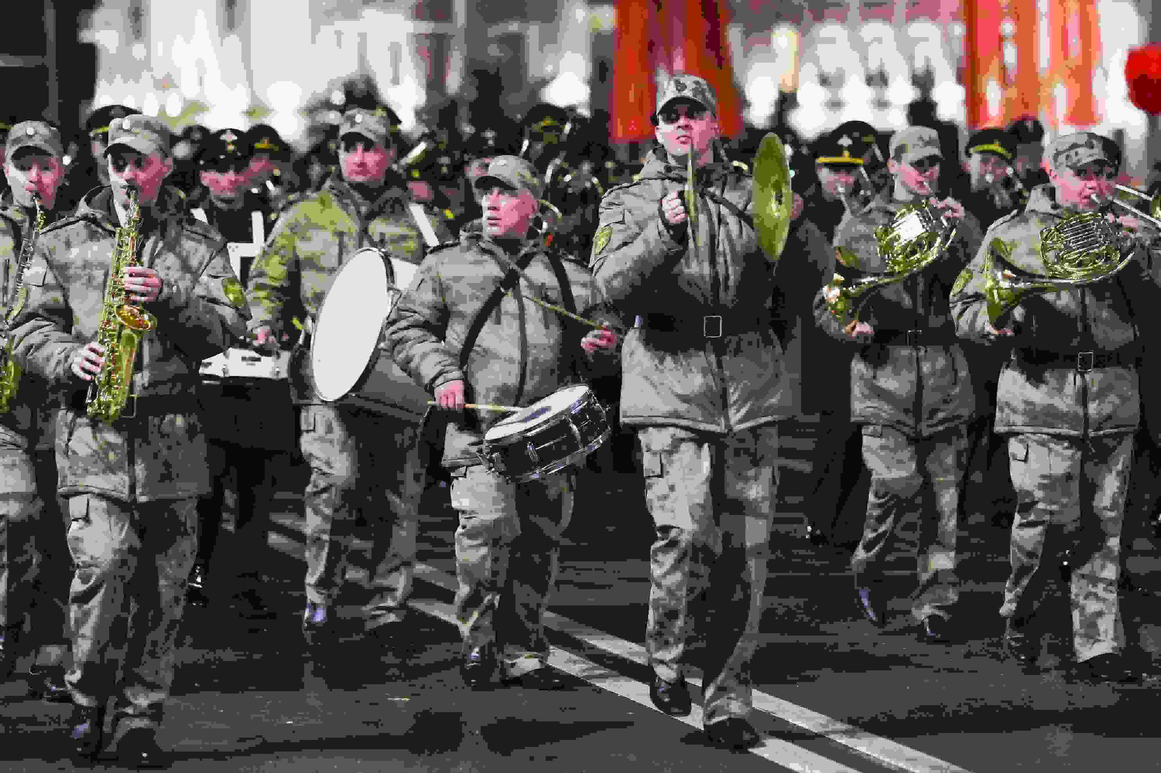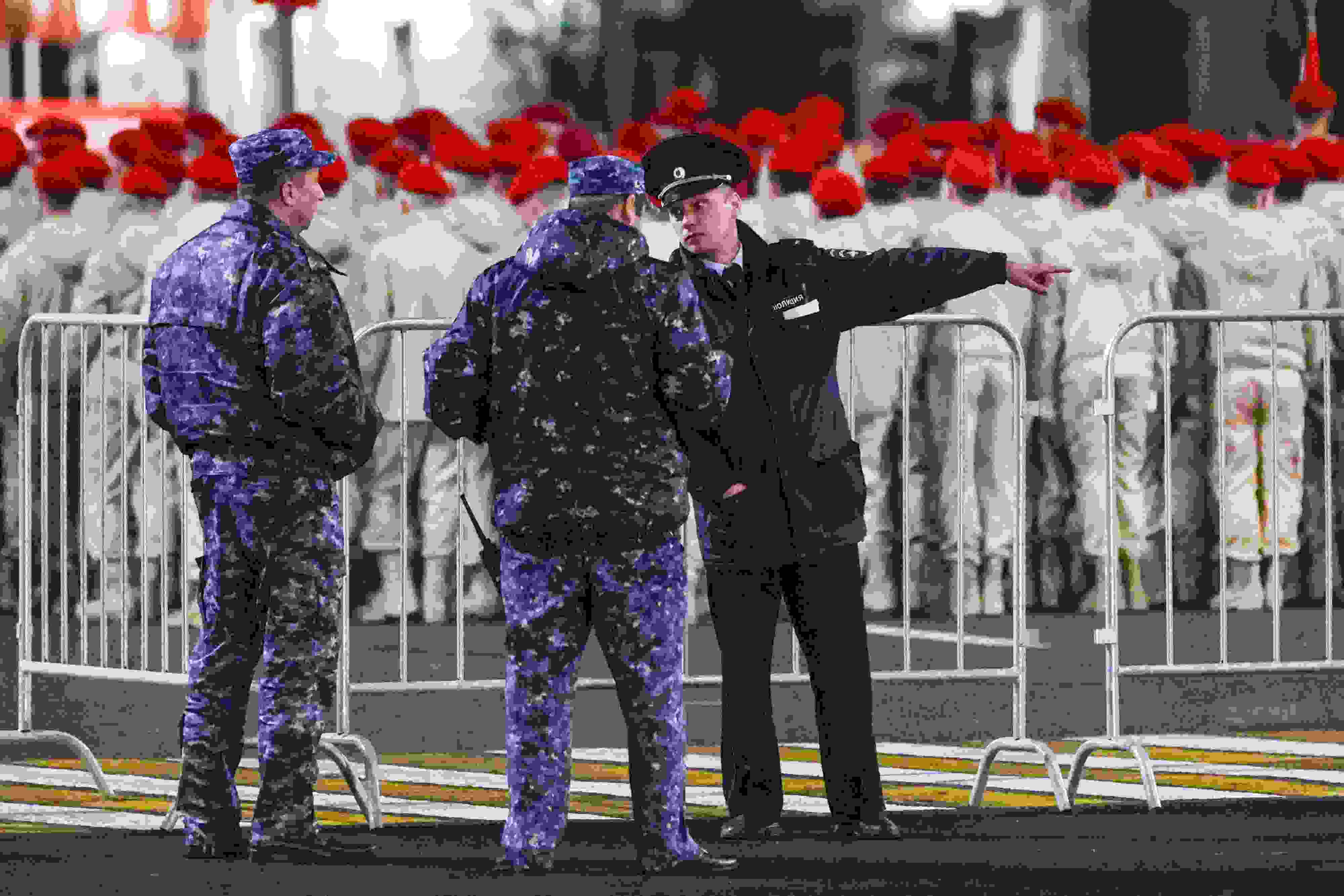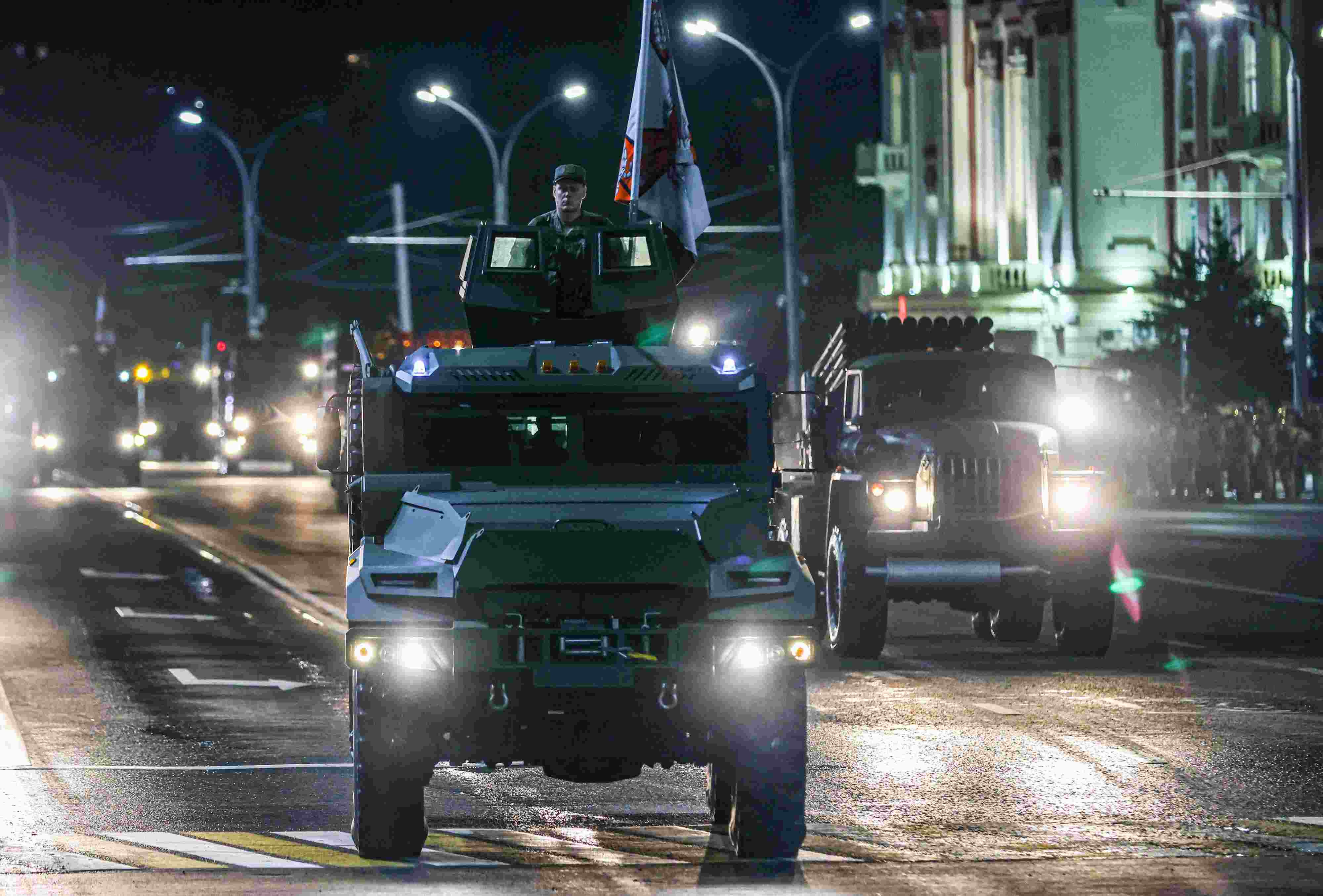 當(dāng)?shù)貢r間2023年5月2日,俄羅斯頓河畔羅斯托夫,士兵們參加勝利日閱兵彩排。 視覺中國