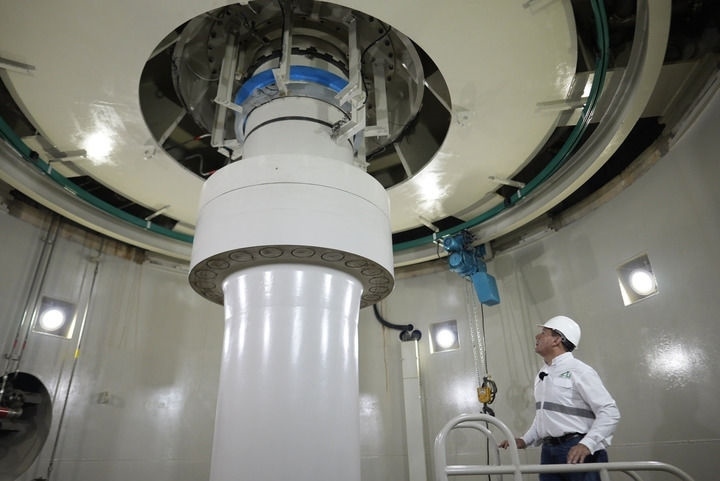 帕圖卡三水電站內(nèi),水電站運營總經(jīng)理內(nèi)爾松·奧爾特加在檢查設備運行狀況。(戴維·德拉帕斯攝)