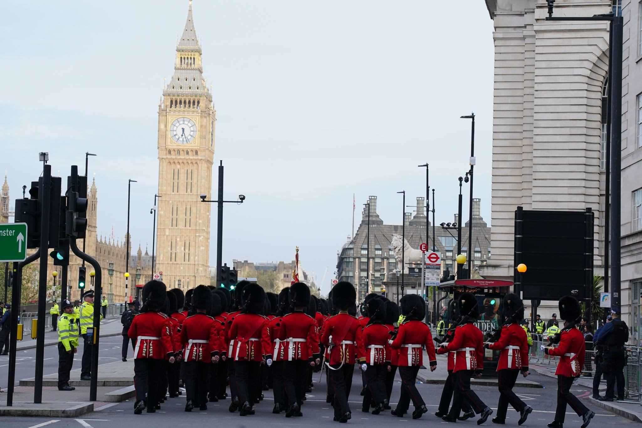英國皇家武裝部隊成員抵達倫敦參加加冕典禮