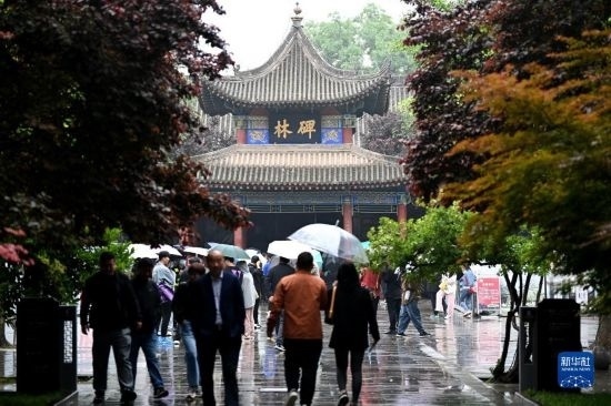 5月9日,游客在西安碑林博物館內(nèi)參觀游覽。