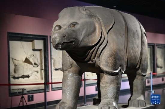這是在西安碑林博物館拍攝的唐獻陵石犀(5月9日攝)。據(jù)記載,唐代時曾有外國向中國贈送活犀。