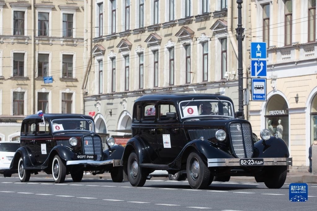 5月20日,各式老爺車在俄羅斯圣彼得堡街頭巡游。   新華社發(fā)(莫京娜攝)
