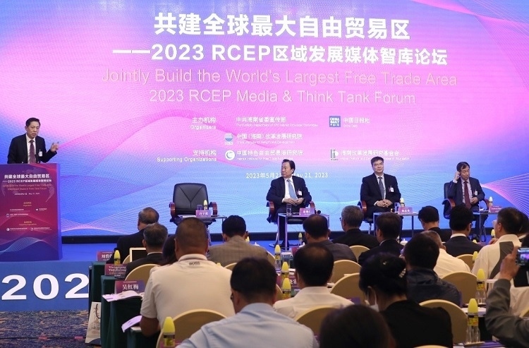 人民網(wǎng)???月21日電 (記者苑基榮)《區(qū)域全面經(jīng)濟(jì)伙伴關(guān)系協(xié)定》(以下簡(jiǎn)稱RCEP)正式生效實(shí)施一年多來(lái),其促進(jìn)區(qū)域貿(mào)易投資增長(zhǎng)與經(jīng)濟(jì)復(fù)蘇的紅利不斷釋放。5月21日,中共海南省委宣傳部、中國(guó)日?qǐng)?bào)社、中國(guó)(海南)改革發(fā)展研究院在??诠餐鬓k“共建全球最大自由貿(mào)易區(qū)——2023 RCEP區(qū)域發(fā)展媒體智庫(kù)論壇”。來(lái)自中國(guó)、韓國(guó)、日本、新加坡、菲律賓、老撾、緬甸、柬埔寨、馬來(lái)西亞、印度尼西亞、澳大利亞、英國(guó)等國(guó)家的主流媒體、智庫(kù)人士以及國(guó)際組織、駐華使館官員和企業(yè)界共450余位代表參加本次論壇,共同圍繞“共建全球最大自由貿(mào)易區(qū)”分享觀點(diǎn)、交流思想,為推動(dòng)區(qū)域交流合作積極建言獻(xiàn)策。