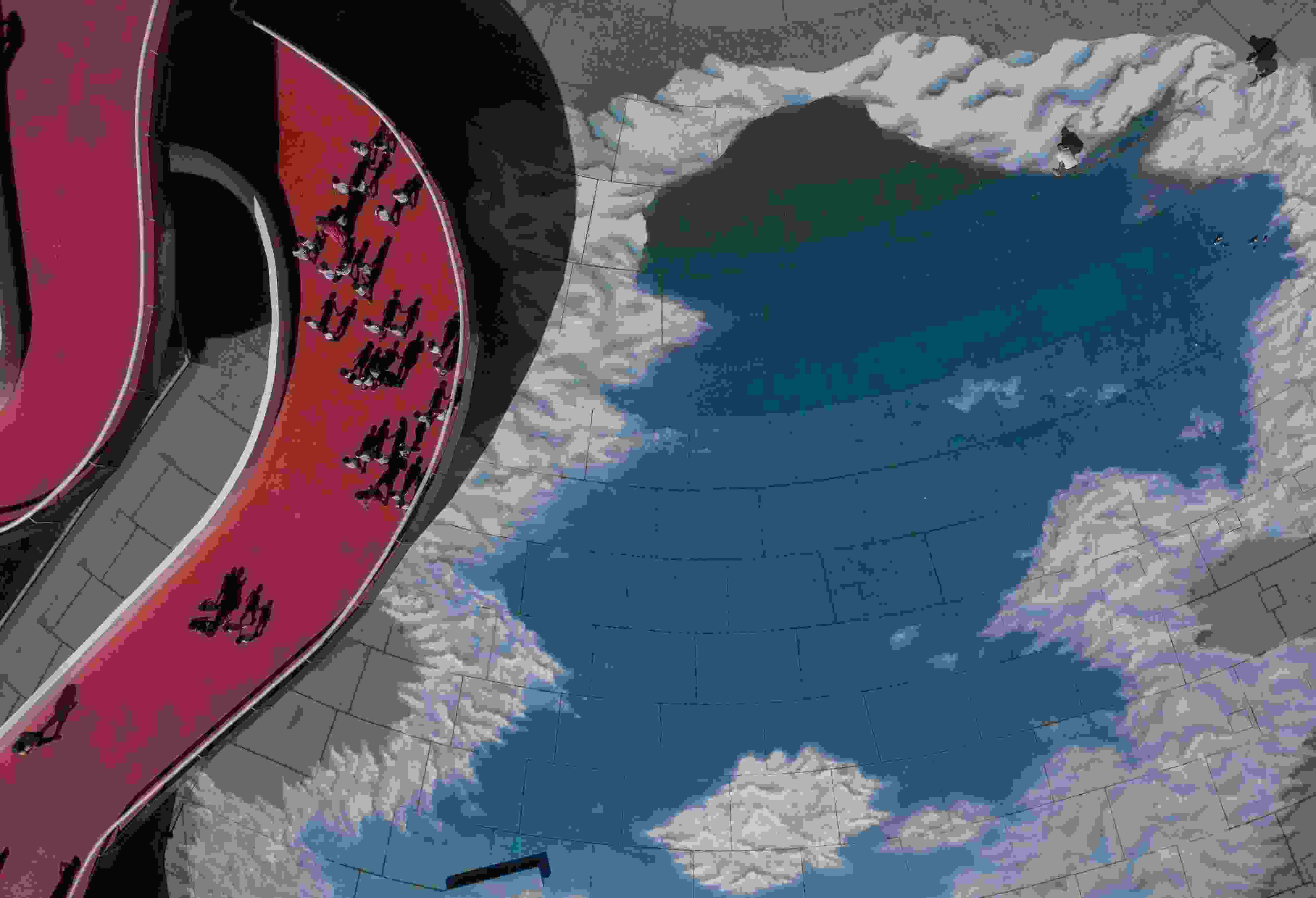 當?shù)貢r間2023年6月6日,巴西里約熱內(nèi)盧,藝術(shù)家在地面上繪制“藍天白云”。 視覺中國