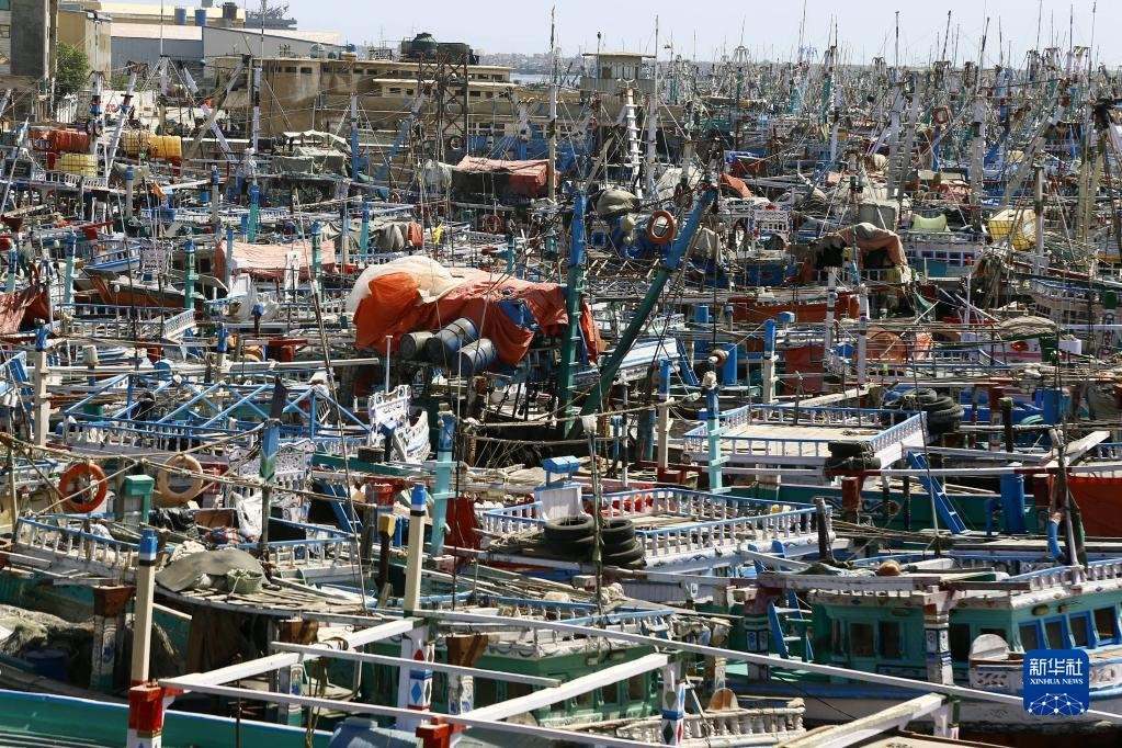 6月13日,在巴基斯坦信德省特達(dá)地區(qū),漁船停泊在漁港內(nèi)。