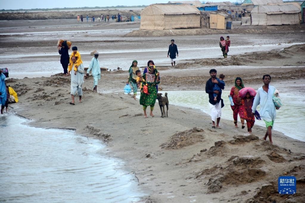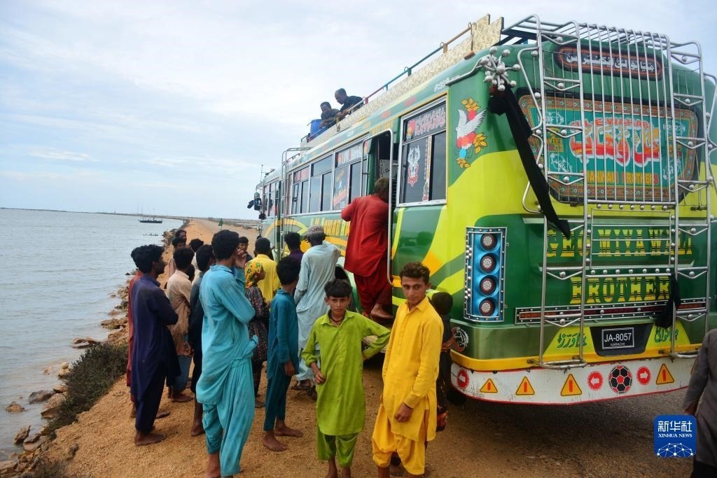 6月13日,受“比帕喬伊”颶風(fēng)迫近影響,民眾從巴基斯坦信德省特達(dá)地區(qū)撤離。