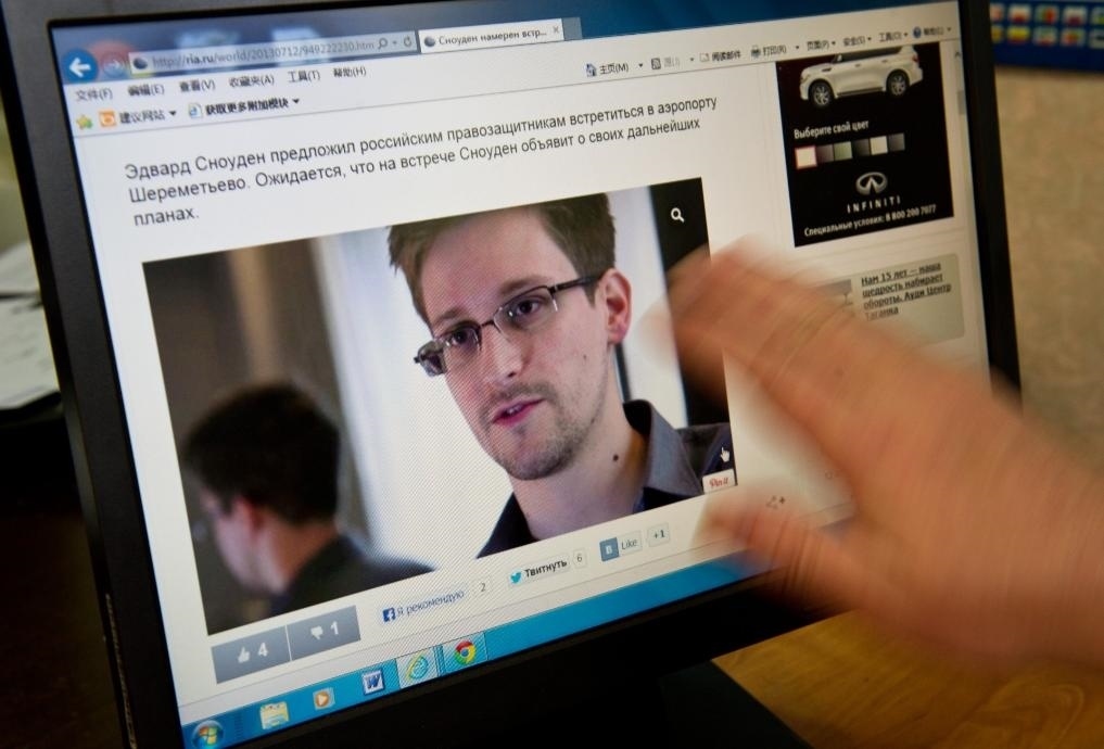 2013年7月12日,新聞工作者在俄羅斯首都莫斯科打開網(wǎng)頁瀏覽斯諾登的訊息。新華社記者姜克紅攝