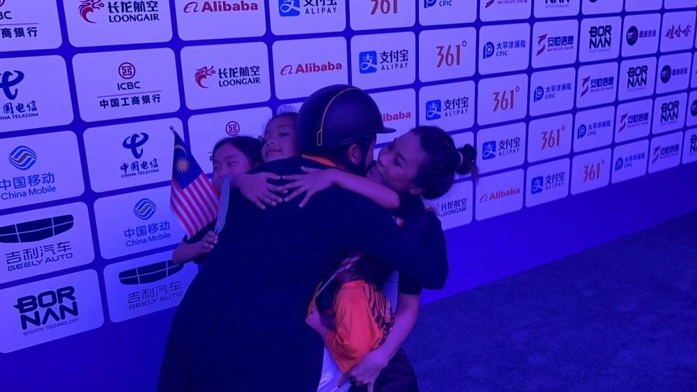 “今天對(duì)我來(lái)說(shuō)太重要了,我的妻子、孩子在場(chǎng)邊目睹了這一刻,這是一場(chǎng)永遠(yuǎn)值得回憶的比賽。我等這枚金牌已經(jīng)25年了,以前我只獲得過銅牌和銀牌?!卑舶涂瞬粌H實(shí)現(xiàn)了個(gè)人突破,也贏得了馬來(lái)西亞馬術(shù)項(xiàng)目的第一塊亞運(yùn)金牌。