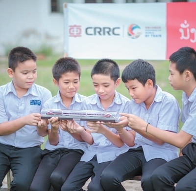 自2021年12月3日通車以來,中老鐵路為便利兩國民眾出行、促進貿(mào)易往來發(fā)揮了積極作用。圖為在由中國中車集團有限公司舉辦的“坐著火車看世界”老撾站活動中,萬象宗佩中學學生觀賞中老鐵路動車模型。本報記者 孫廣勇攝