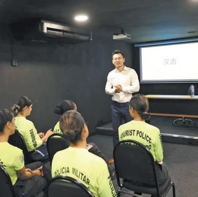 巴西里約旅游警察參加中文培訓(xùn)班。本報記者 陳一鳴攝
