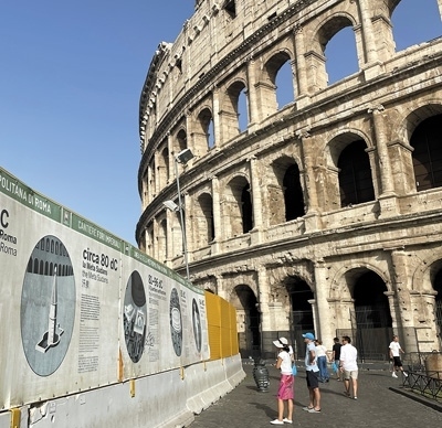 在意大利羅馬熱門景點斗獸場,游客正在閱讀帶有中文解說的標(biāo)識牌。本報記者 謝亞宏攝