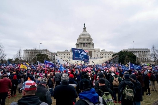 2021年1月6日,在美國(guó)首都華盛頓的國(guó)會(huì)大廈前,時(shí)任總統(tǒng)特朗普的支持者舉行示威游行。部分示威者沖擊國(guó)會(huì)大廈,導(dǎo)致國(guó)會(huì)參眾兩院認(rèn)證總統(tǒng)選舉結(jié)果的聯(lián)席會(huì)議中斷數(shù)小時(shí)。事件造成4名示威者和1名國(guó)會(huì)警察死亡。新華社記者劉杰攝
