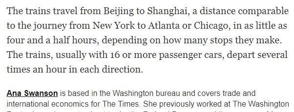 但是,《紐約時(shí)報(bào)》隨后刪除了這篇報(bào)道中有關(guān)中美列車速度對比的內(nèi)容。