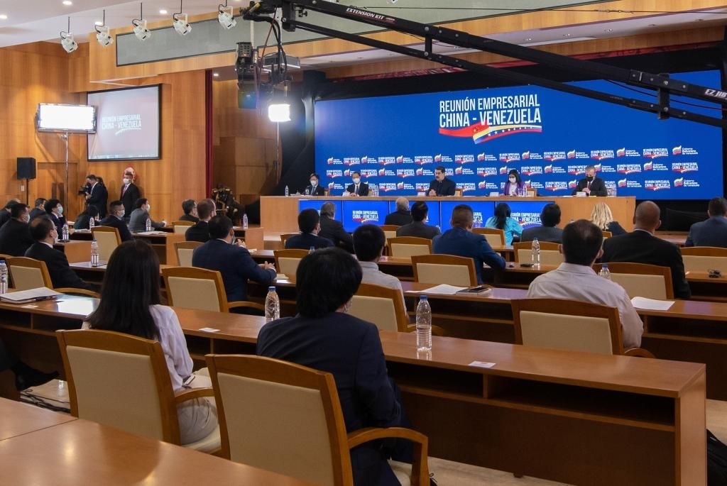 2020年11月6日,委內(nèi)瑞拉總統(tǒng)馬杜羅率內(nèi)閣主要成員與中資企業(yè)代表舉行座談會(huì),希望進(jìn)一步推進(jìn)兩國(guó)務(wù)實(shí)合作,造福兩國(guó)人民。新華社發(fā)(薩爾戈多攝)