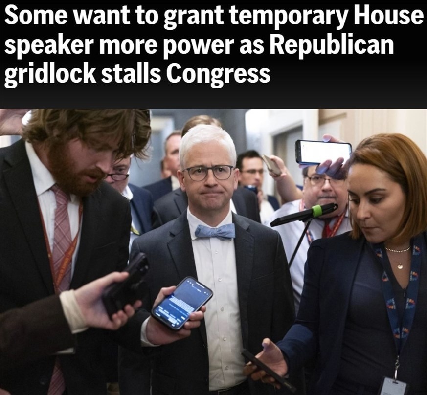 在此之前,為確保眾議院“正常履職”,有人提出當(dāng)務(wù)之急是擴(kuò)大麥克亨利的職權(quán)。不過,一些共和黨議員對此并不感興趣,認(rèn)為在預(yù)算和其他重大政策方面,為臨時議長擴(kuò)權(quán)并不是有效的做法。