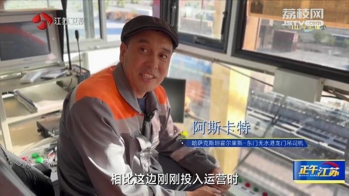 哈薩克斯坦霍爾果斯-東門無水港龍門吊司機(jī)阿斯卡特說:“相比這邊剛剛投入運(yùn)營時(shí),運(yùn)輸量有非常明顯的增加。原來每天1-2列,現(xiàn)在7-8列通過。我收入有增多了,來這之前是3個(gè)小孩,現(xiàn)在是5個(gè)小孩?!?/p>