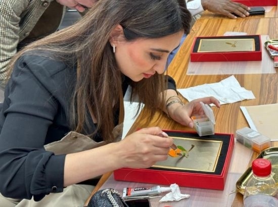 嘉賓在中國工藝集團(tuán)體驗(yàn)景泰藍(lán)制作過程 (新華社記者王艷剛攝)