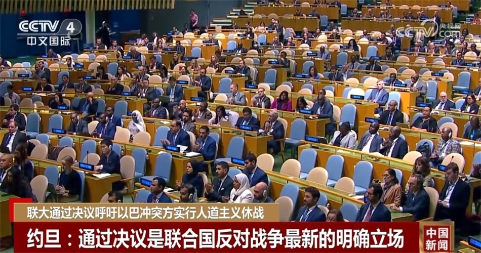 表決結(jié)果為120票贊成、14票反對(duì)、45票棄權(quán),決議要求各方立即全面履行國際法規(guī)定的義務(wù),特別是保護(hù)平民和民用設(shè)施的義務(wù),允許和便利人道主義準(zhǔn)入,向整個(gè)加沙地帶的平民提供基本物品和服務(wù),并鼓勵(lì)建立人道主義走廊和采取其他舉措以便向平民運(yùn)送人道主義援助。
